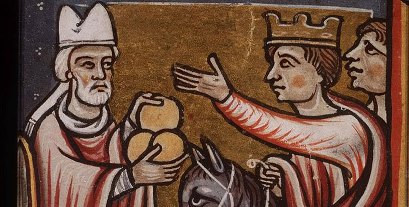 Во времето кога Божјиот угодник свети Василиј Велики (330-379) стана Архиепископ Кесариски, епархот на Кападокија, кој беше многу алчен и груб човек, имаше обичај редовно да доаѓа со својата војска и да го ограбува градот. Кога на свети Василиј му јавија дека епархот повторно доаѓа, тој побара од богатите луѓе во Кеасрија да го донесат сиот свој накит и златници. Кога епархот пристигна, свети Василиј го пречека и му го понуди богатството. Епархот се изненади и по некое чудо се засрами, така што одби било што да земе, ниту пак го ограби градот. Тој никогаш повеќе не се ни врати, ниту пак им досадуваше на верните од градот. Свети Василиј остана со сиот накит и златници токму на Новогодишната вечер не знаејќи што на кого му припаѓа. Тогаш просветлен од Господ, тој ги замоли готвачите да направат мали лебови за секој верник. Во секој од лебовите тој стави нешто накит и златници. На денот на Новата Година кога сите луѓе дојдоа во црква, тој на секого му даде по едно лепче. Тоа што секој го имаше најдено во лепчето беше токму тоа што претходно го имаше дадено.