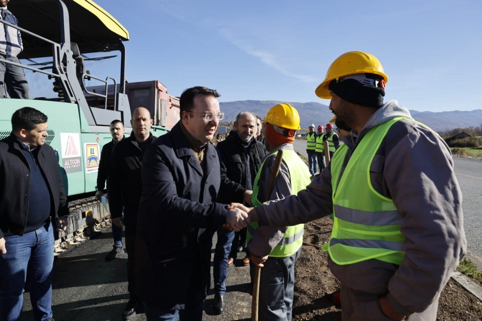 – Ова е мое прво појавување на овој проект. Ветивме работа а помалку да зборуваме. Ги решаваме проблемите со автопататот и веќе ги забележуваме резултатите. Правиме историска работа за Охрид и за цел регион. Имаме голема мобилизација за изградба на автопатот и тоа со околу 300 машини и околу 600 вработени кои секојдневно работат на трасата. Денеска промовираме асфалтирање во зимски услови и на минусни температури се со цел да ја забрзаме изградбата и да ги достигнеме роковите што си ги зададовме. Тоа е до почетокот на летната сеозна да пуштиме за сообраќај околу 40 километри од Врбјани до Охрид со еден мал прекин кај Ботун, а до крај на 2026 година да го изградиме целиот автопат. Исто така во преткфалификација е избор на изведувач за автопатот Кичево-Букојчани и очекувам дека на пролет ќе имаме избрано изведувач. Потоа тој автопат ќе се надоврзе на автопатот кој интензивно започна да се гради, а тоа е од Гостивар до Букојчани и понатаму од Гостивар до Тетово, така да граѓаните од Охрид и регионот ќе добијат нов модерен автопат од Охрид до Скопје. Исто така по целата траса ќе има и алтернативен пат – изјави заменик претседателот на Владата и министер за транспорт Александар Николоски.