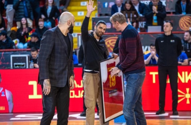 Пред натпреварот во СРЦ „Кале“ раководството на македонската Кошаркарска федерација на Дамјан Стојановски му подарија врачен дрес со бројот 19.