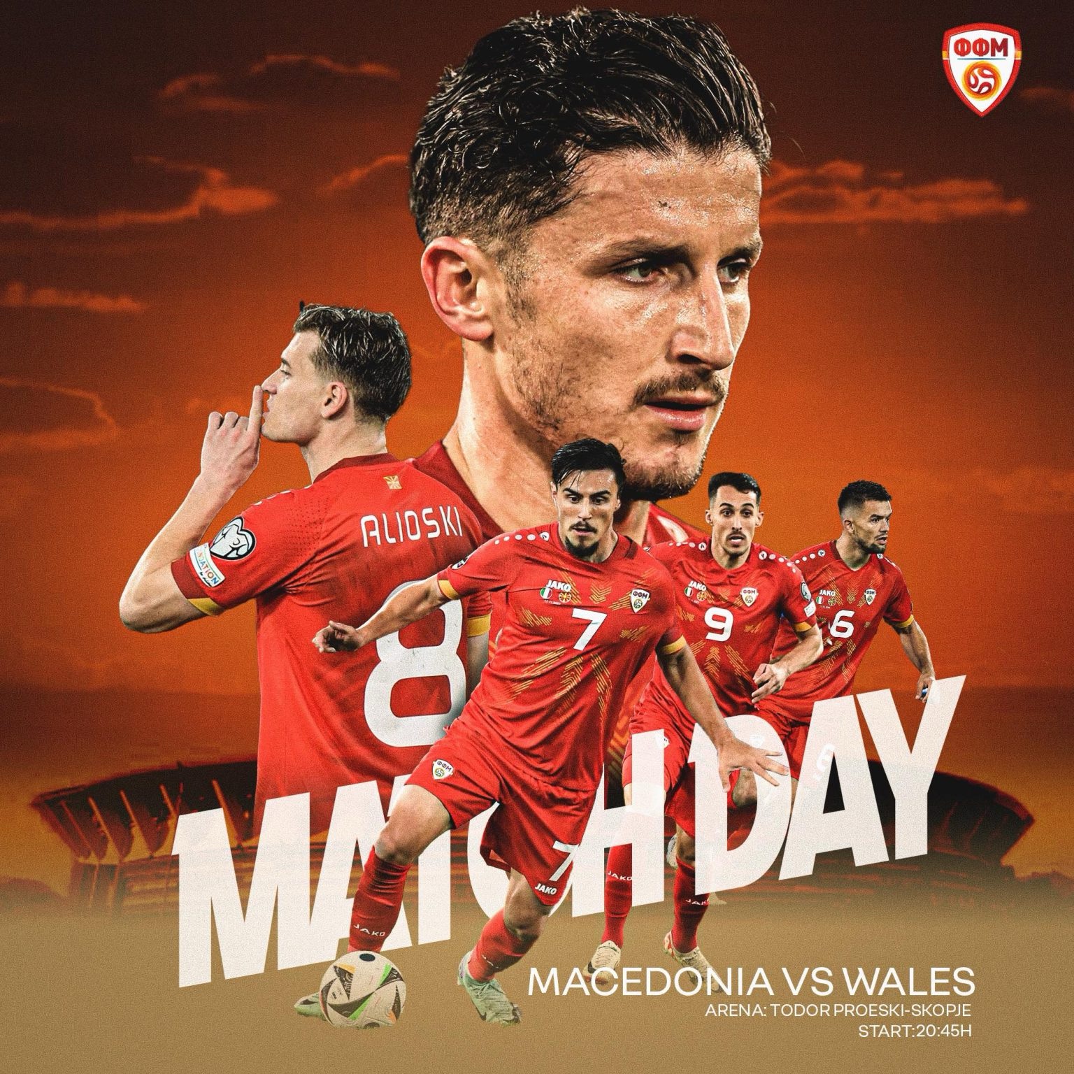 Македонската А репрезентација денеска против Велс го игра натпреварот од второто коло од квалификацискиот циклус за пласман на Светското првенство 2026.