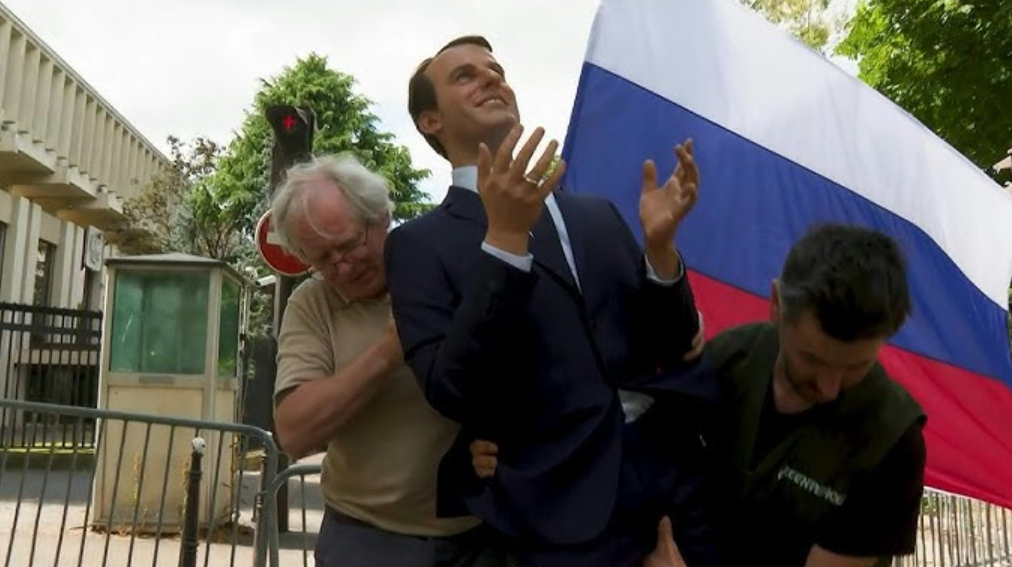Активисти на „Гринпис“ ја украдоа восочната фигура на Макрон и ја однесоа на протест пред руската амбасада во Париз