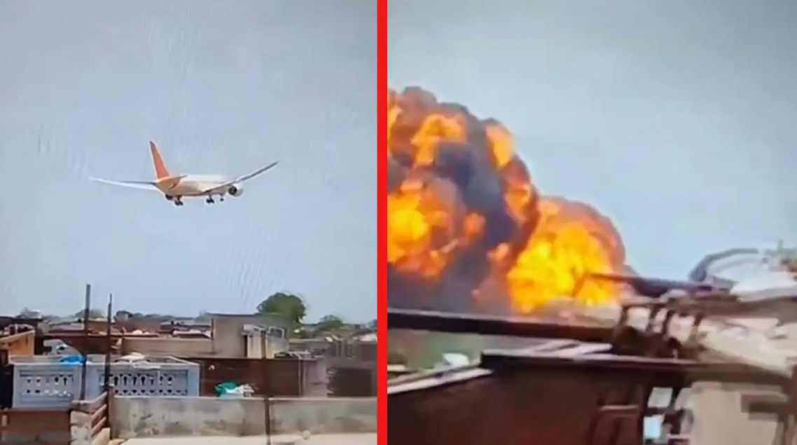 На социјалните мрежи се појави видео од моментот на падот на авионот. Според фотографиите, се работи за авионот Боинг 787 Дримлајнер, кој е целосно уништен, обвиткан во пламен.