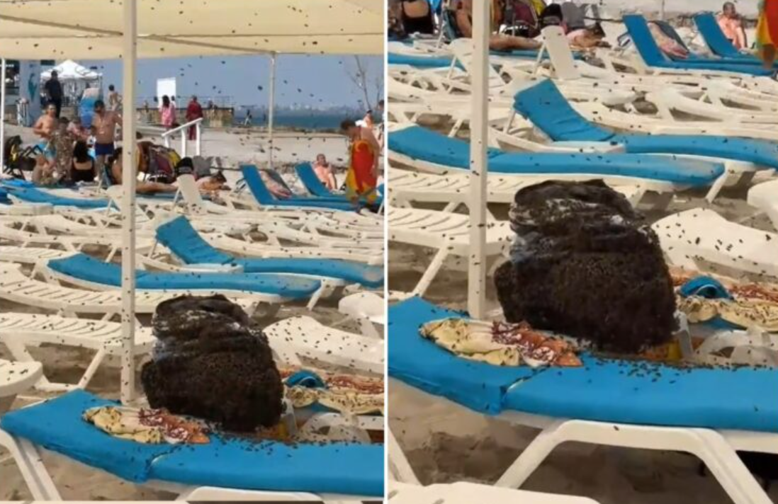 Имено, семејство кое минатиот викенд уживало на локална плажа во Украина, по кратко капење се вратило на брегот и наишло на вистински кошмар – нивната торба со ручек била целосно прекриена со стотици пчели.
