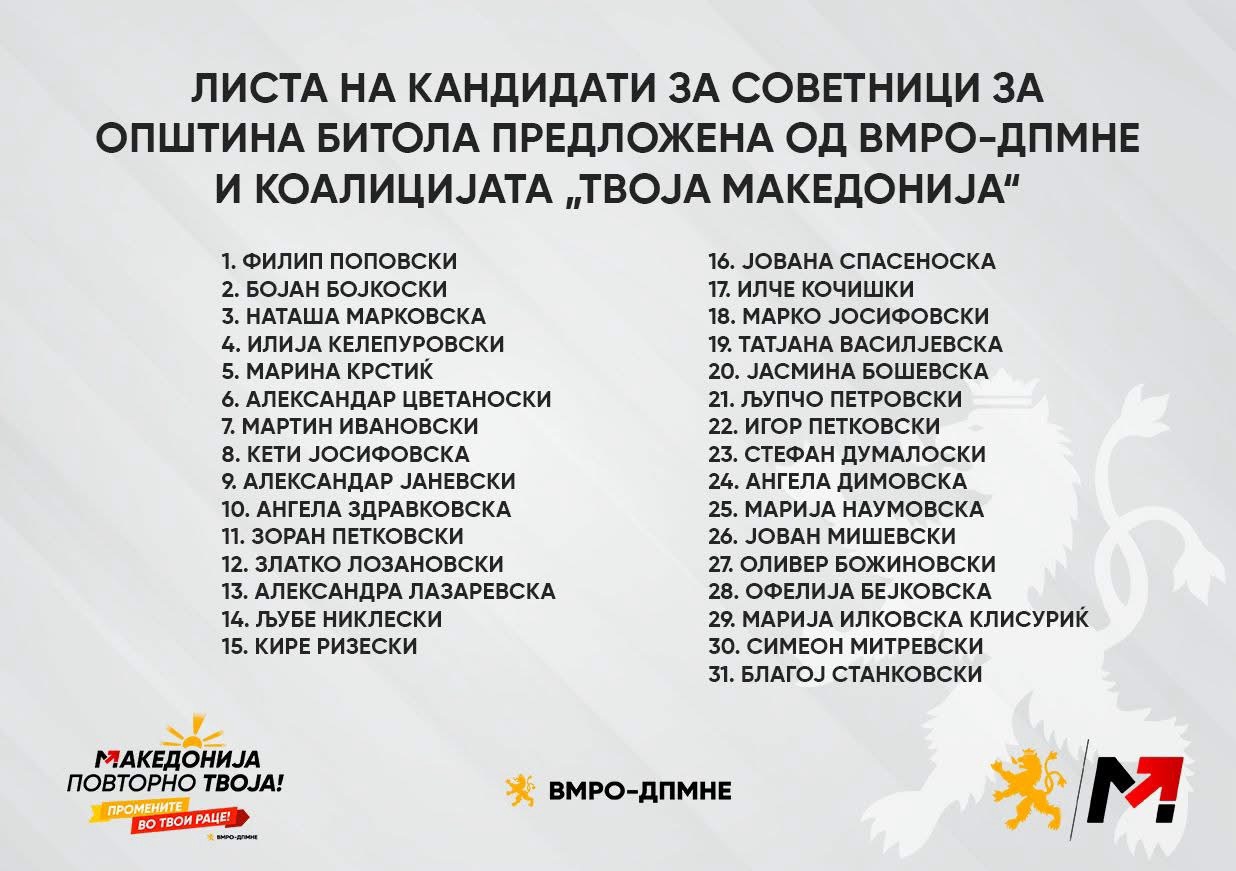 ВМРО-ДПМНЕ ја претстави советничката листа во Битола – континуитет, искуство и нова енергија