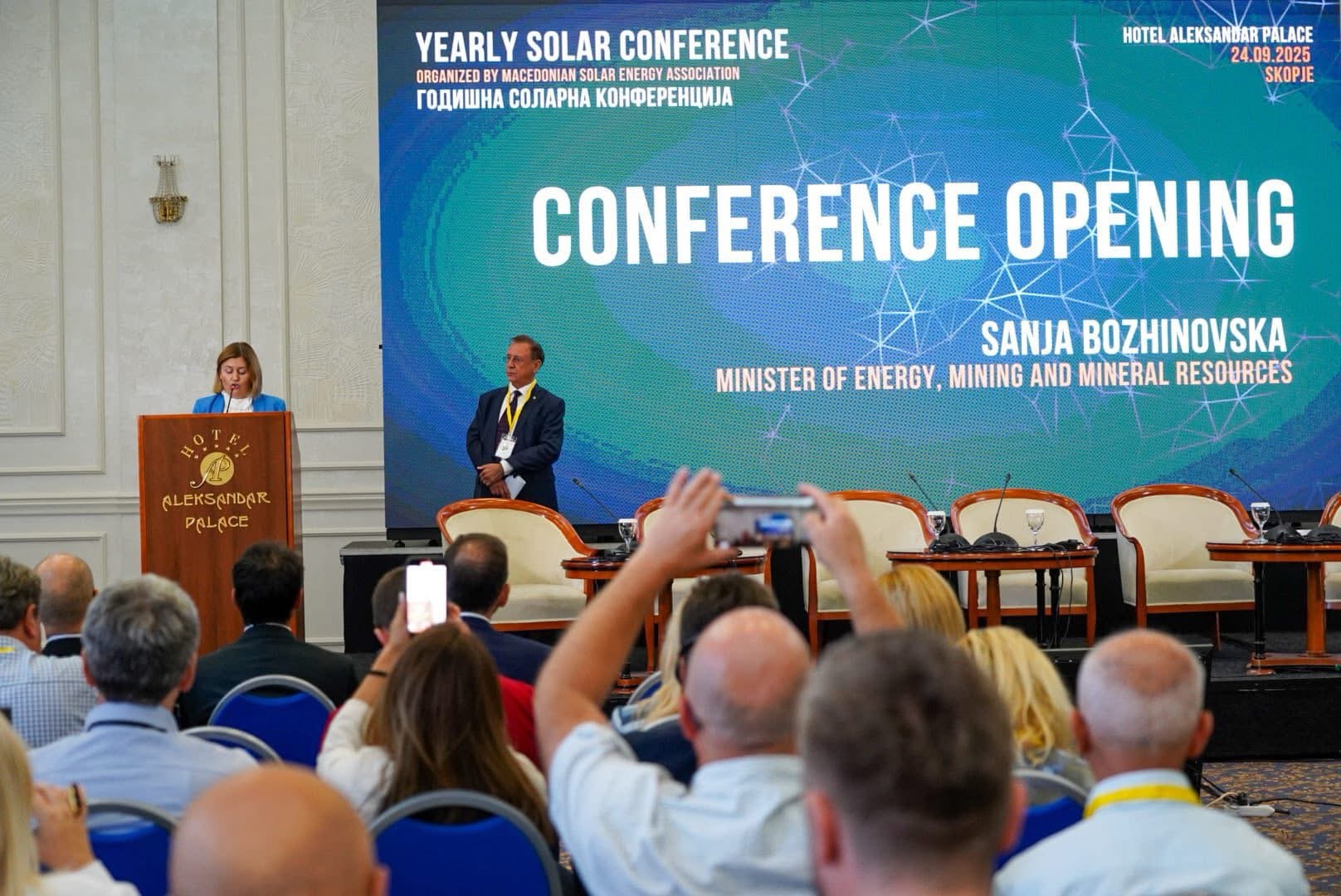 Министерката за енергетика, рударство и минерални суровини, Сања Божиновска, ја отвори 4-та Годишна Соларна Конференција, настан кој ги обединува компании, институции и меѓународни партнери околу заедничката цел – одржлива иднина и енергетска независност преку сончевата енергија.