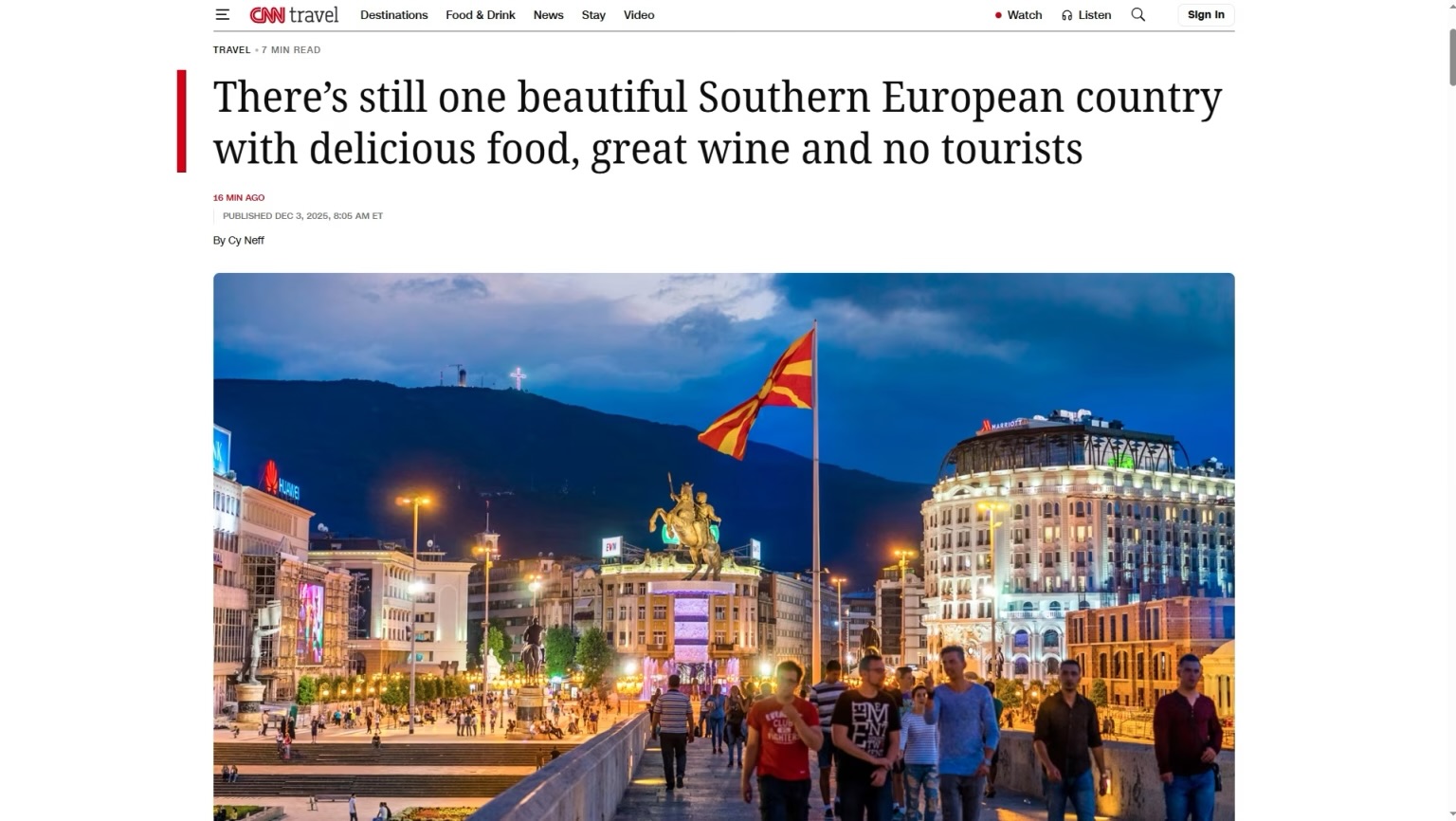 CNN: Сè уште постои една прекрасна јужноевропска земја со вкусна храна, одлично вино и без туристи