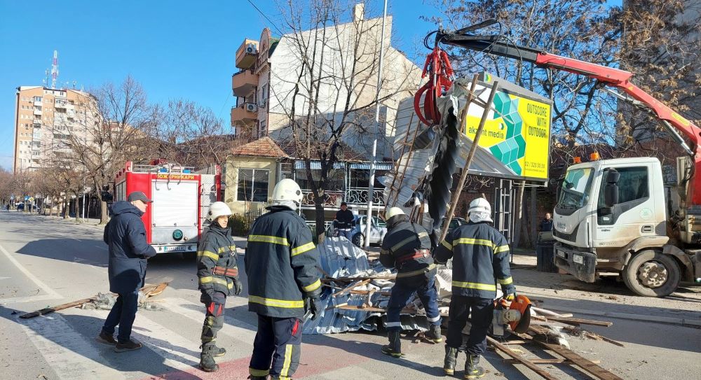 Екипи на локалната пожарна служба и комуналци извршија брза проценка на состојбата и презедоа мерки за исправување на опасните делови од кровот, а потоа и расчистување на теренот.