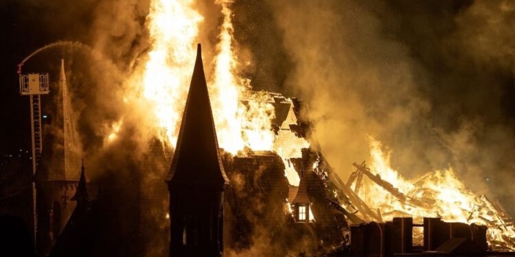 Историската црква Вондел во Амстердам синоќа беше речиси целосно уништена од пожар што избувна околу 1 часот наутро во кулата на црквата во Вонделпарк. Засега нема пријавени повреди.