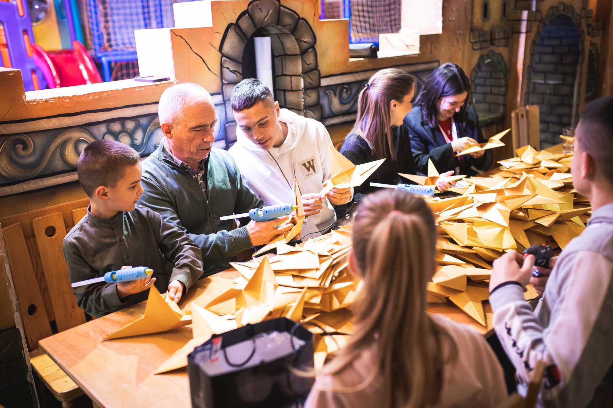 На младите бадникари-деца од различни возрасти во подготовката, односно изработката на бадниковите ѕвезди, вечерва им се приклучи и градоначалникот на Битола, Тони Коњановски.