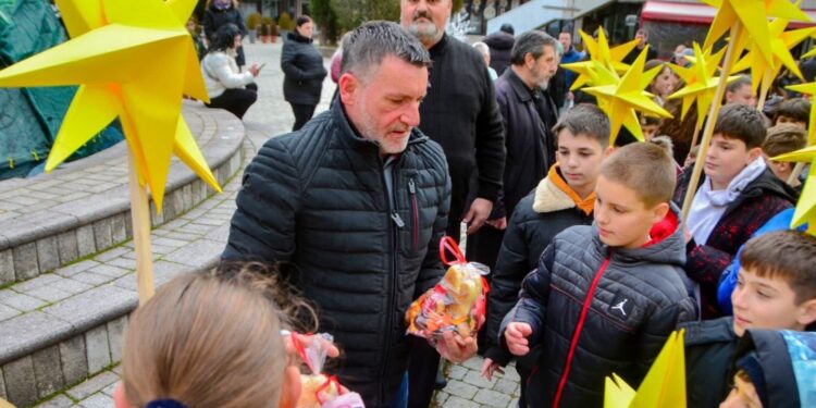 На градскиот плоштад во Пробиштип, со голема радост беа пречекани дечињата кои учествуваа во Бадниковата поворка. Со детска радост, насмевки и бадникови песни, заедно беше најавено Христовото Рождество.