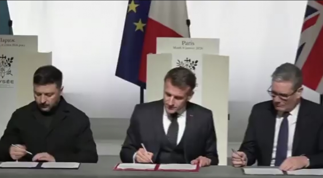 Францускиот претседател Емануел Макрон, британскиот премиер Кир Стармер и украинскиот претседател Володимир Зеленски потпишаа декларација за намери со која се отвора можност за идно распоредување на мултинационална сила во Украина.