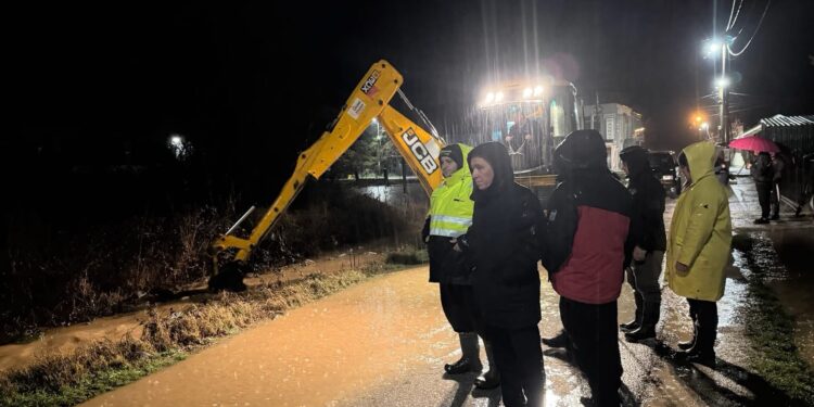 Јавното претпријатие „Стрежево“ интервенира во селото Лера, заглавено дрво во малиот мост кој спречува истекување на водата. Од претпријатието информираат за многу надојдена вода во реката „Шемница“, а патот кој води за селото Доленци е привремено затворен за движење.