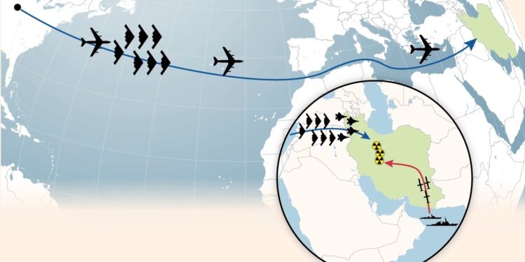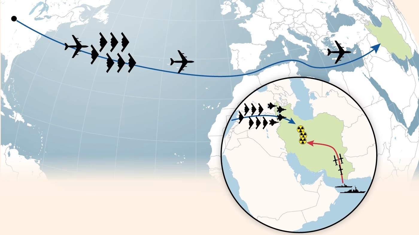 Од почетокот на јануари, десетици транспортни авиони C-17 Globemaster од САД полетуваат кон Блискиот Исток, со транзит преку Велика Британија, кон Ал Удеид во Катар и Саудиска Арабија. Специјалните единици 160th SOAR (Night Stalkers) се распоредени на RAF Fairford, додека AC-130J борбени авиони се приземјени во близина. MQ-4C дронови вршат дневно разузнавање над Протокот Хормуз.