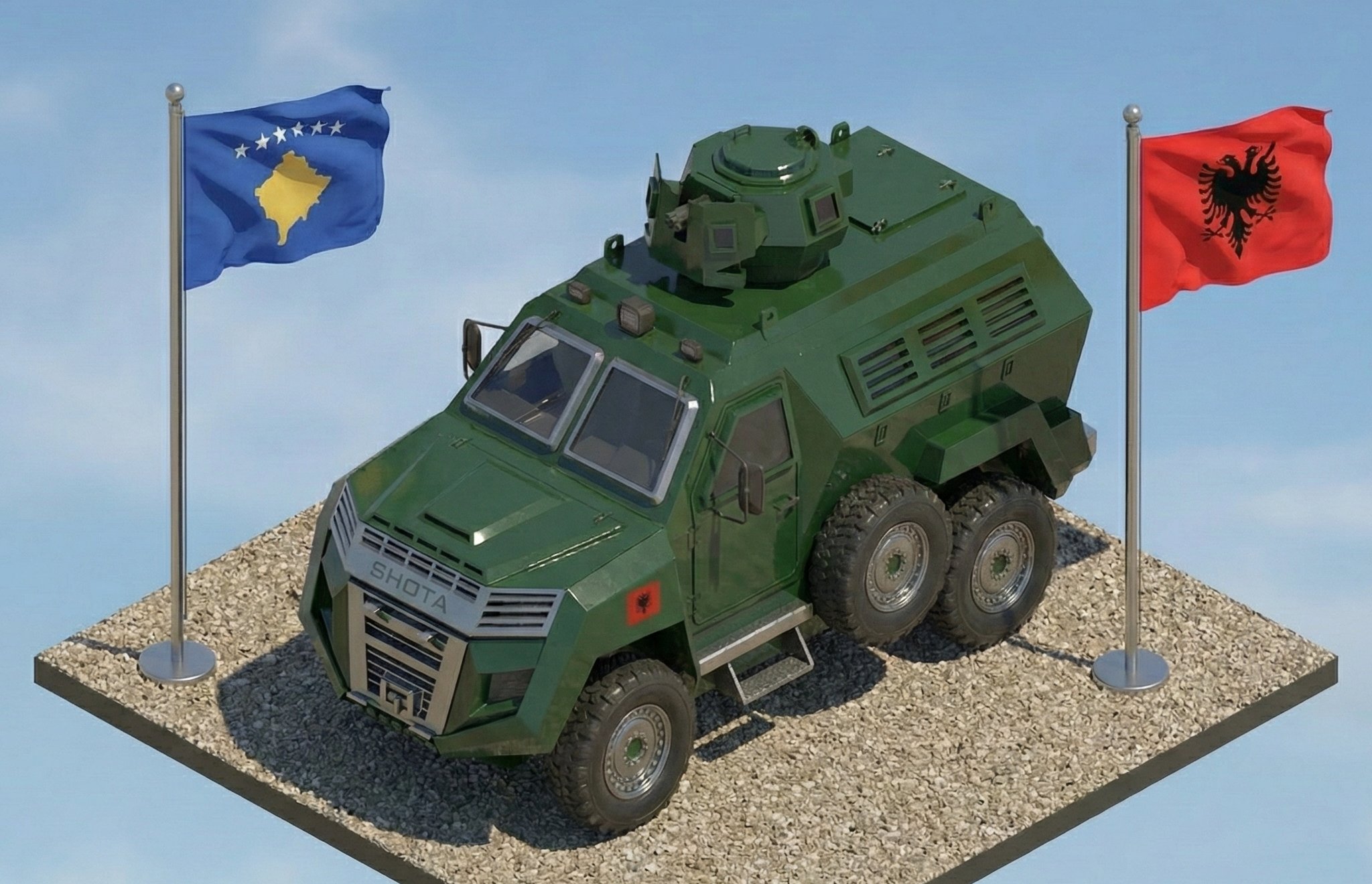 Според официјалната информација, оклопните возила „Shota“, кои досега се произведуваа исклучиво во Албанија, ќе почнат да се произведуваат и на територијата на Косово, што претставува значаен чекор во развојот на косовската одбранбена индустрија и зајакнување на воените капацитети.