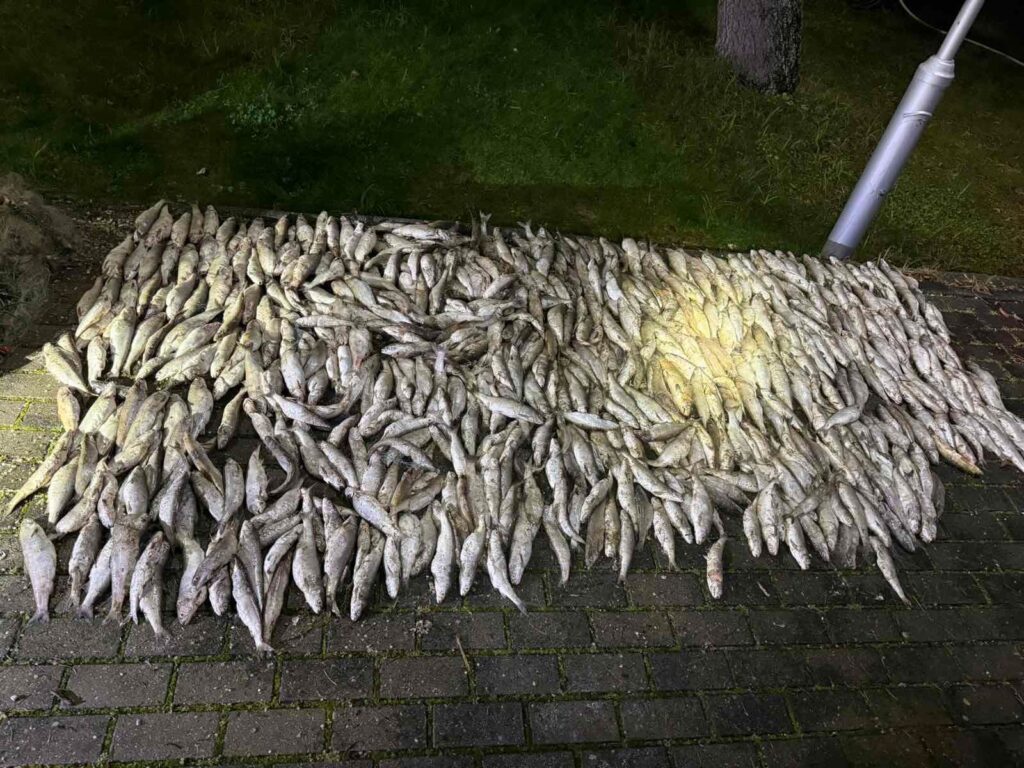 При извршениот преглед на пловниот објект, биле пронајдени шест рибарски мрежи со вкупна должина од околу 720 метри, во кои имало 585 парчиња риба белвица, со вкупна тежина од 106,8 килограми.
