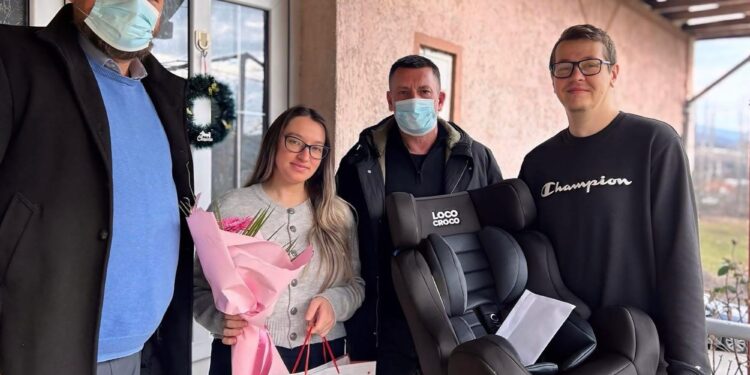 Градоначалникот на Општина Пробиштип, Тони Тоневски, денеска го посети домот на првороденото дете во општината за 2026 година, при што на малата Исидора, родена на 1 јануари во 00:22 часот, ѝ беа доделени пригодни подароци од Општина Пробиштип и од Општинскиот совет за безбедност на сообраќајот на патиштата.