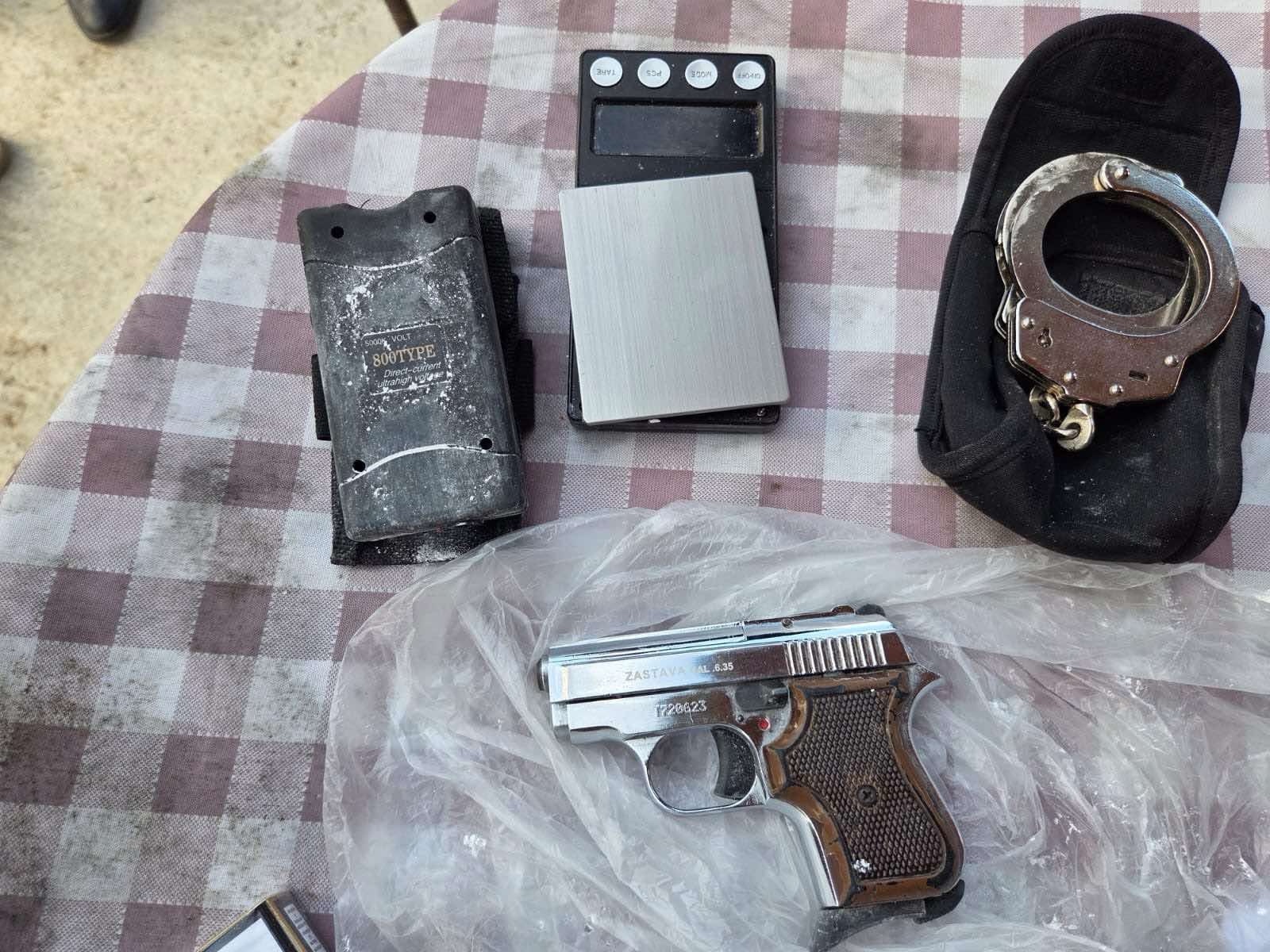 При претресот биле пронајдени пиштол „Застава“ калибар 6.35, електрошок, дигитална вага и други предмети. Лицето К.Б. претходно е лишено од слобода, а по целосно документирање на случајот против него ќе следува соодветна пријава.