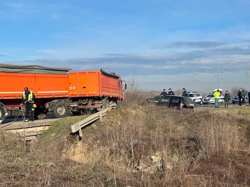 Во директен судир помеѓу патнички автомобил и камион, две лица загинаа на самото место, додека жена и деветгодишно дете беа итно пренесени во Белград со тешки повреди.