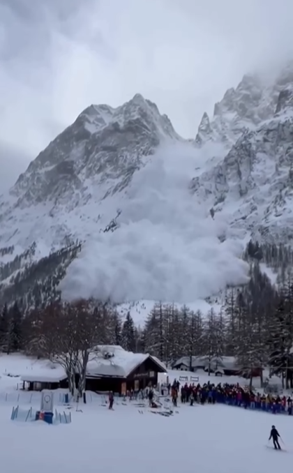 Неконтролирана и бескомпромисна, лавината се спуштила со огромна брзина, уништувајќи сè што ѝ се нашло на пат — вклучувајќи и редови високи борови. Туристите што првично биле фасцинирани од спектаклот, во наредните секунди се нашле заробени во паничен бег. Десетици скијачи, меѓу кои имало и деца, се обиделе да побегнат, но густите облаци снег ги преплавиле во последниот миг.