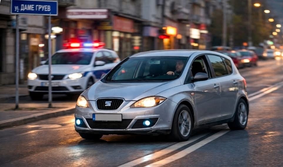 Пријавениот Ѓ.К., на работно место „полицаец“ во Одделот за заштита на определени личности и објекти, на 06.02.2026 на ул. „Даме Груев“ во Скопје управувал патничко возило „сеат алтеа“ без положен возачки испит, при што како учесник во јавниот сообраќај без да поседува возачка дозвола за управување со моторно возило не се придржувал до прописите за безбедноста во сообраќајот, со што управувал моторно возило на безобѕирен начин.