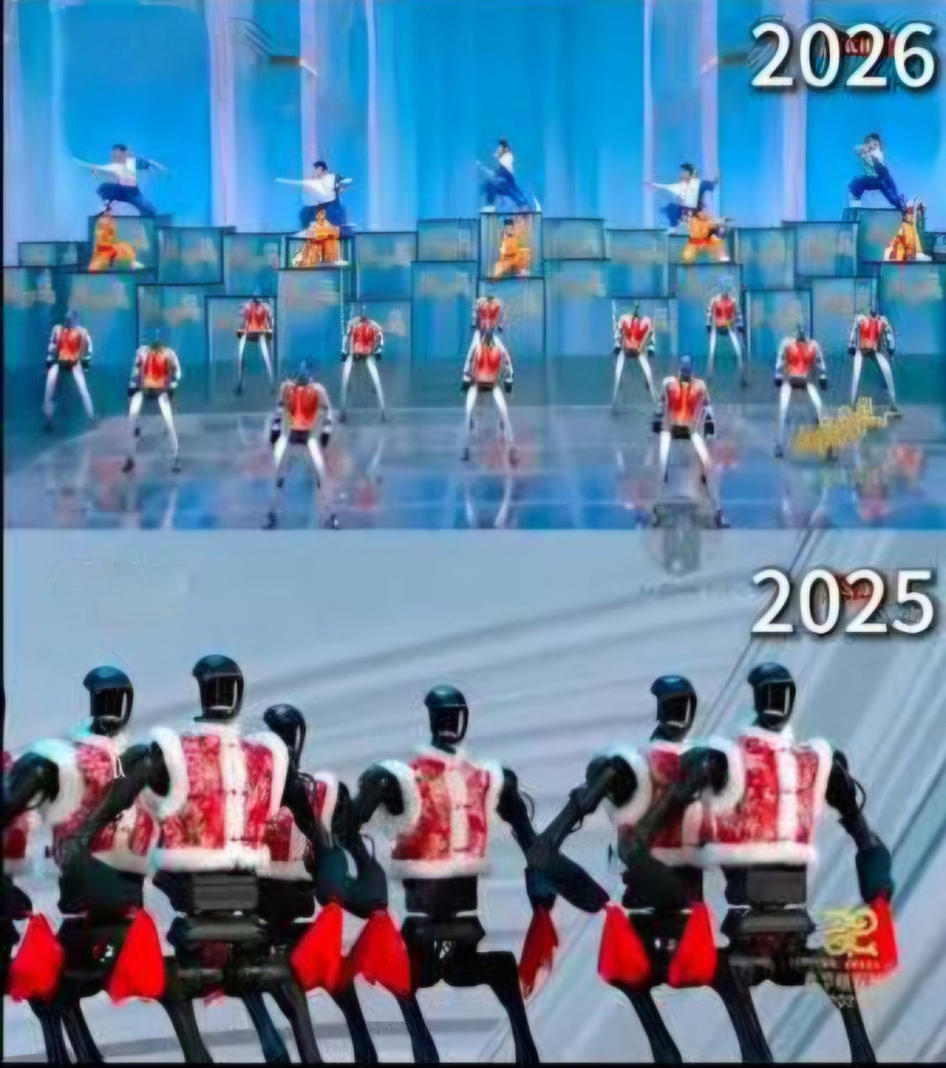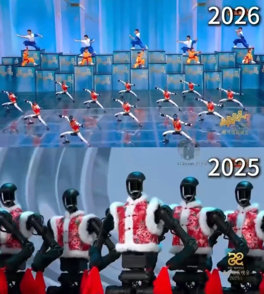 Кина ја воодушеви светската јавност со спектакуларен настап на хуманоидни роботи на најгледаното телевизиско шоу во земјата – Пролетниот фестивалски гала на CCTV, каде новата генерација роботи демонстрираше кунг-фу, салта, нунчаки и синхронизирани кореографии. Настапот покажа огромен технолошки скок во однос на 2025 година, кога роботите изведуваа значително поедноставни танцови движења.