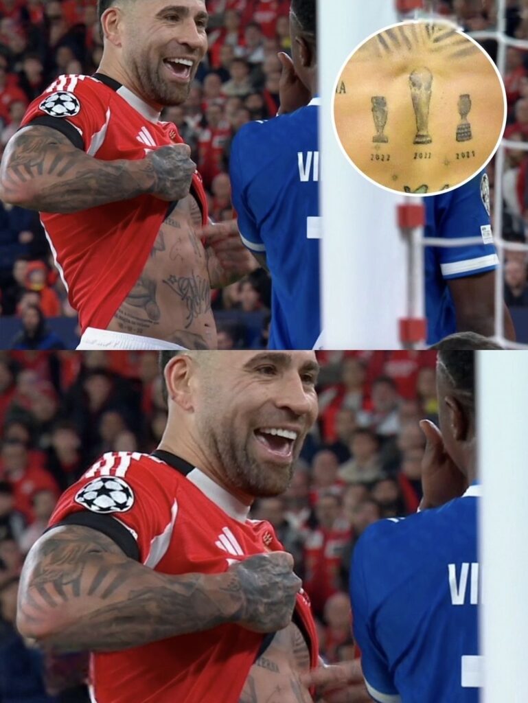 Првично се мислеше дека станува збор за навреда, но од снимките подоцна стана јасно дека Отаменди всушност му ја покажувал тетоважата со пехарот од Светското првенство во Катар 2022 – симбол на титулата што ја освои со Аргентина.