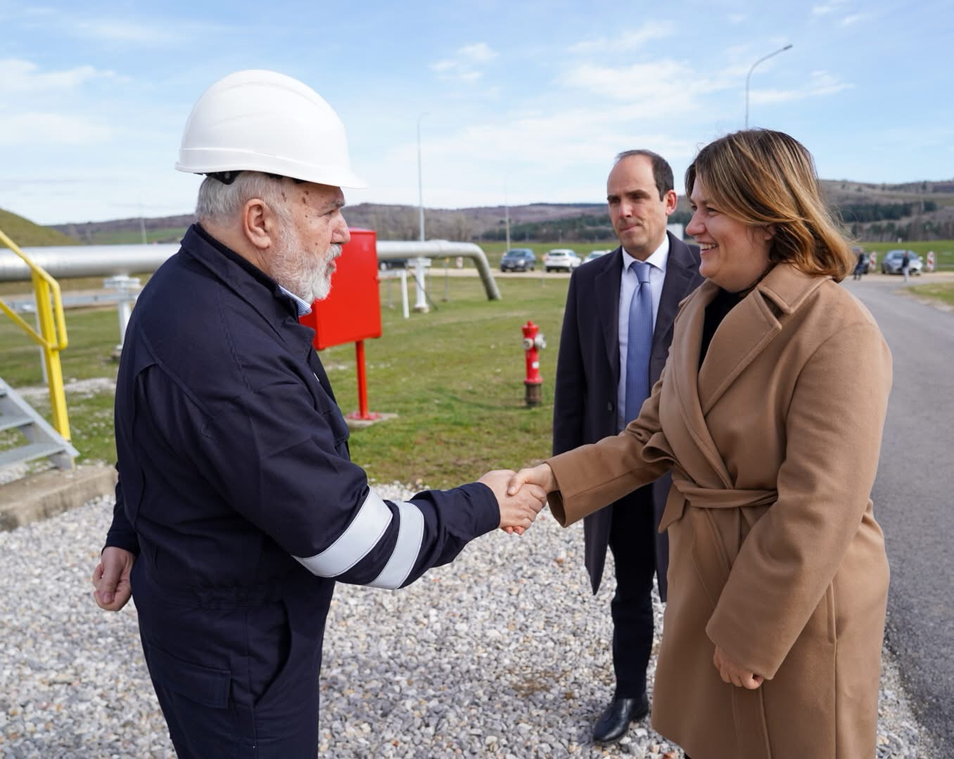 Министерката за енергетика, рударство и минерални суровини, Сања Божиновска, присуствуваше на завршната техничка контрола и верификација на мерниот систем на продуктоводот преку кој ќе се транспортира дизел гориво од Рафинеријата во Солун до Рафинеријата ОКТА во Скопје. Со успешно реализираната проверка се потврдени исправноста, прецизноста и целосната функционалност на системот, со што се исполнети сите технички и контролни предуслови за негово ставање во употреба. Со ова, продуктоводот повторно започнува со работа по 13 години прекин, претставувајќи значаен чекор кон зајакнување на сигурноста во снабдувањето со нафтени деривати и модернизација на енергетската инфраструктура.