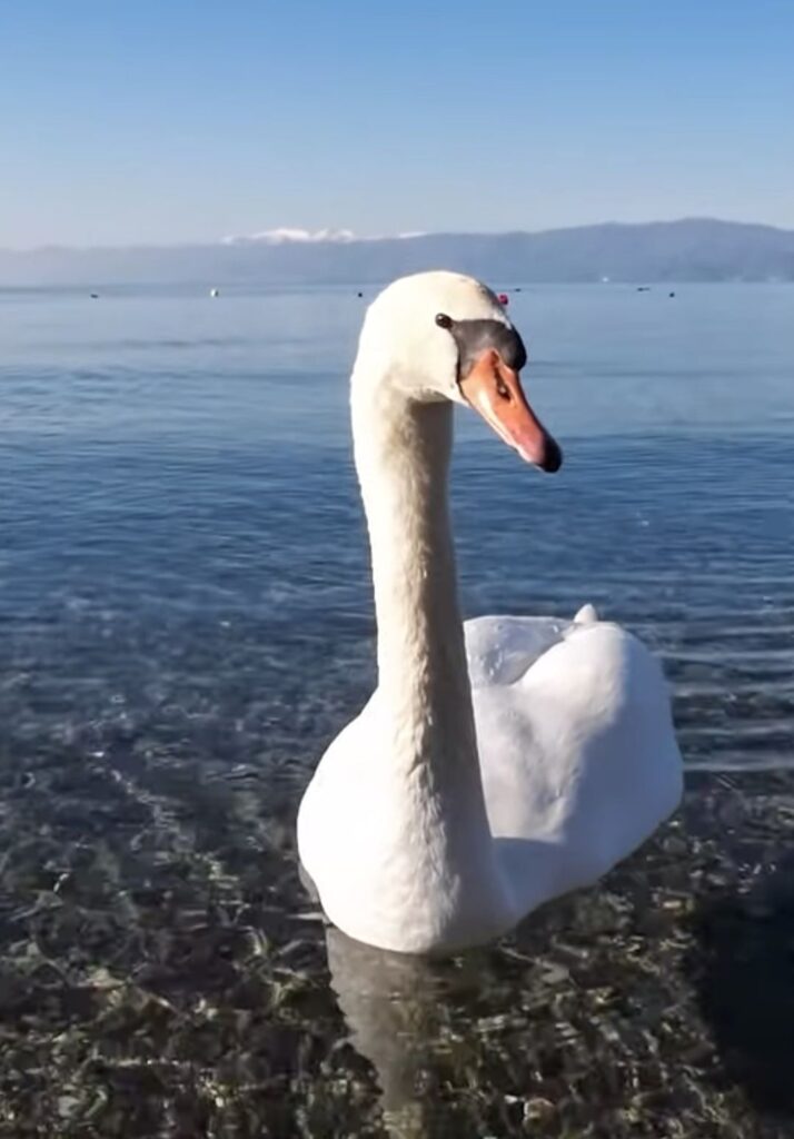 Охрид и во февруари знае да изгледа како разгледница. На Градската плажа „Воска“ денеска беше забележан прекрасен лебед кој мирно пловеше во кристално чистата вода, создавајќи вистинска зимска идилична сцена.
