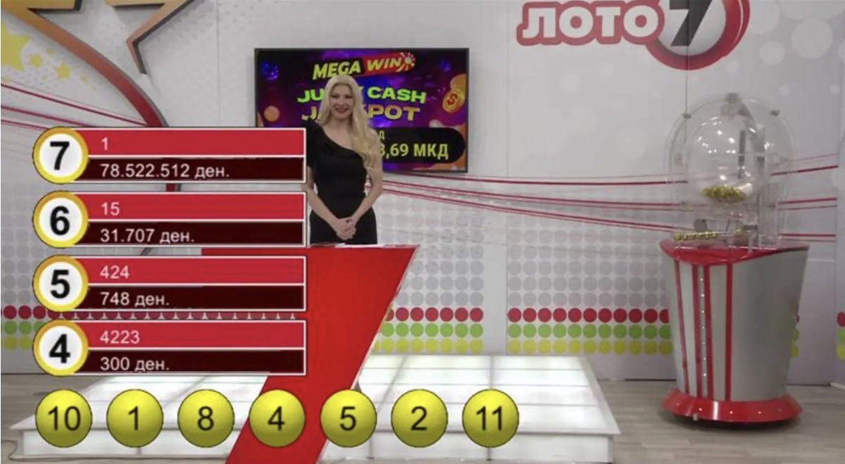 Во вечерашното извлекување на играта на среќа Лото 7 од 37, кое се емитува на Канал 5 телевизија, беше извлечена главната премија – 7-ка.