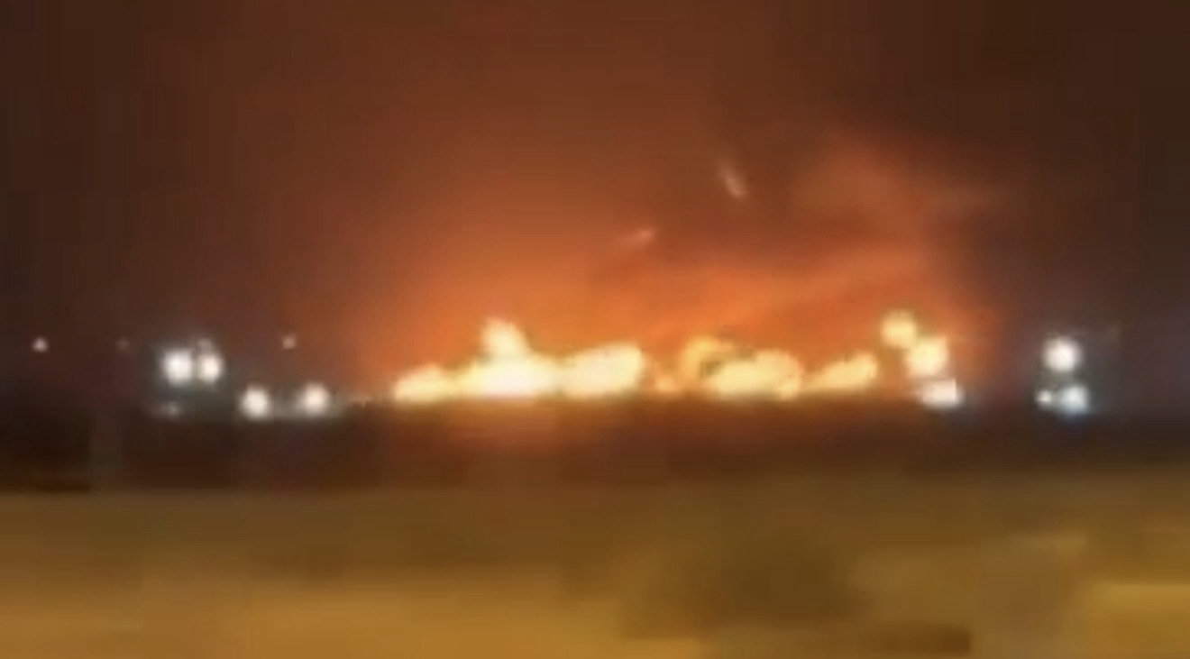 Сателитски снимки и сведоштва од теренот покажуваат густ чад и пламен во делови од базата, а се претпоставува дека е погоден и резервоар за гориво, што предизвикало силен пожар.