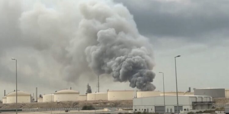 Thick smoke rose from a huge refinery in Bahrain, where state oil company Bapco declared force majeure after it was struck pic.twitter.com/ZIxEaGjcnY