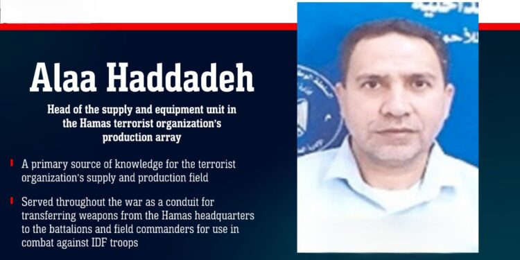Израелските сили соопштија дека во прецизна операција е ликвидиран Алаа Хададех висок функционер на Хамас задолжен за логистика и снабдување со оружје.