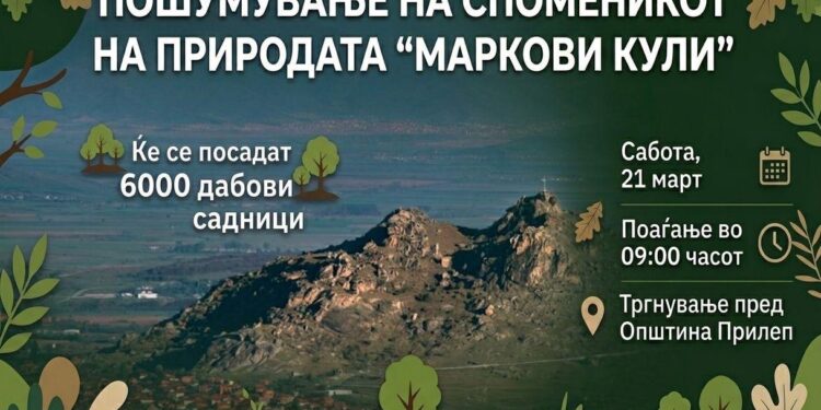 Градоначалникот на Прилеп, Дејан Проданоски, го најави почетокот на нов проект за заштита на природата и создавање позелена животна средина. Со поддршка од Бирото за регионален развој, проектот „Пошумување на споменикот на природата Маркови Кули“ е одобрен за реализација, а неговата цел е да се зајакнат еколошките процеси и да се зачува биолошката и пределската разновидност на овој значаен локалитет.