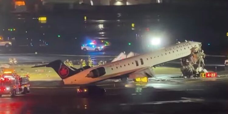 Регионален патнички авион на Ер Канада експрес се судри со интервентно противпожарно возило на пистата по слетувањето на аеродромот ЛаГвардија во Њујорк, предизвикувајќи сериозен безбедносен инцидент и целосен прекин на воздушниот сообраќај.
