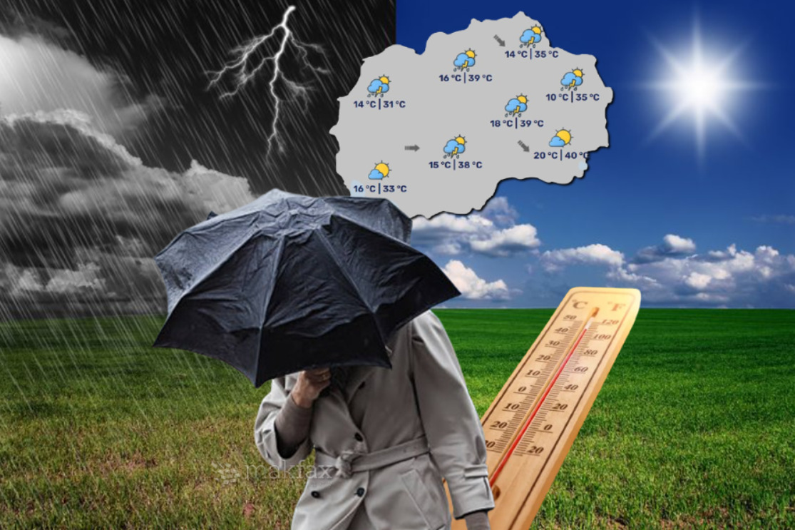 Во Македонија, попладне времето ќе стане нестабилно со повремено обилни врнежи од дожд, кои на планините ќе преминуваат во снег. Ќе дува и засилен јужен ветер, кој локално може да достигне брзина над 60 километри на час.