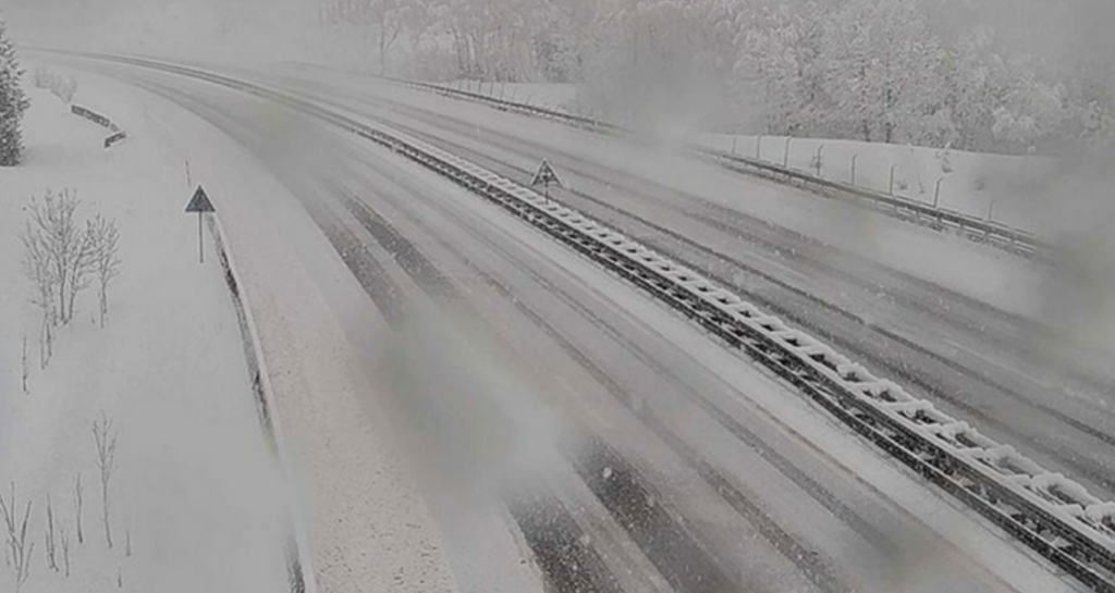 Автобус удри во карпа во Хрватска: Сообраќајен хаос поради снежни врнежи