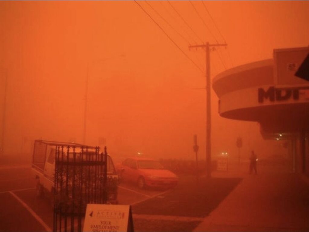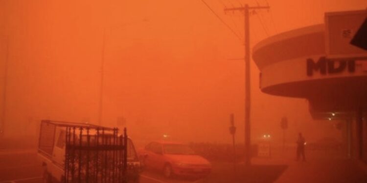Невообичаена и вознемирувачка сцена ја зафати Западна Австралија откако тропскиот циклон „Нарел“ предизвика масивни облаци од прашина што го претворија небото во длабока крваво-црвена боја. Наместо вообичаена дневна светлина, регионот потона во темнина, а воздухот стана тежок и исполнет со прашина.