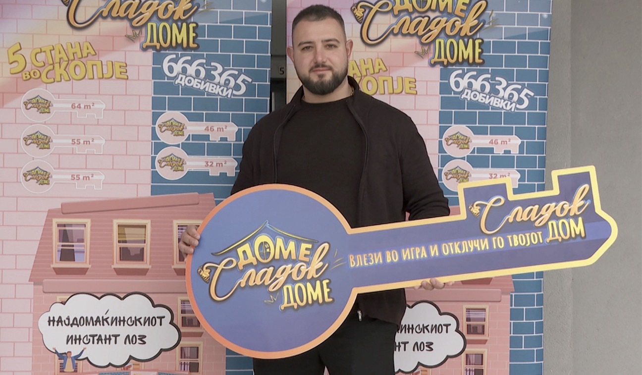 Ордан Зарински од Штип е најновиот добитник на премијата од инстант лозот „Доме сладок доме“. Со мала инвестиција од само 100 денари, тој ја предизвика среќата и освои стан во Скопје. Интересно е што првиот купен лоз му донел добивка од 100 денари. Тој се одлучил да ја замени добивката со нов лоз и токму замената го довела до големото изненадување – сопствен дом во главниот град.