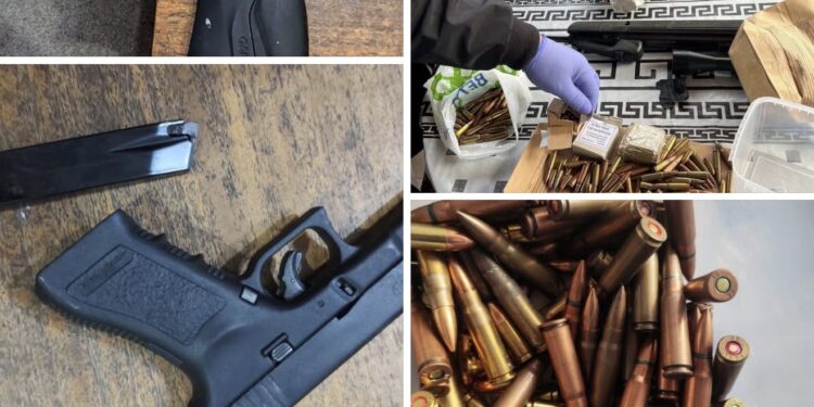 На 30.03.2026 во 18:30 во Гостивар, полициски службеници од ОВР Гостивар го лишија од слобода Љ.Ѓ.(39) од Гостивар. При претреси во неговиот дом и помошни простории на ул. „Балиндолска“ и во негов стан на ул.„Илинденска“, извршени со судска наредба, пронајдени се и одземени 13 кесички со бела прашкаста материја, дигитална вага, околу 150 парчиња муниција од различен калибар, еден сигнален пиштол, патрони за ловечка пушка и една воздушна пушка.