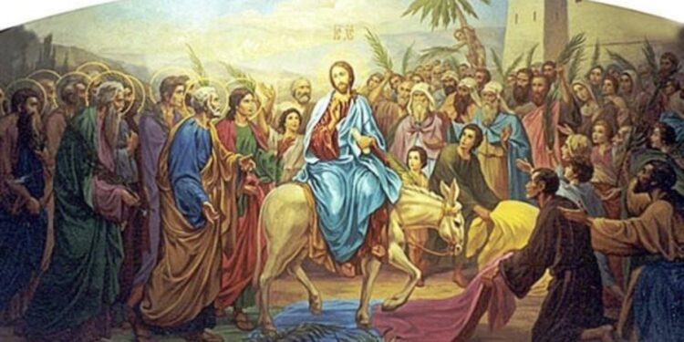 Според христијанското предание, Христос влегол во градот качен на магаре – симбол на мирот и понизноста, за разлика од коњот кој се поврзувал со војна. Овој чин се смета за исполнување на пророштвата и најава за неговата жртва и страдање што ќе следи.