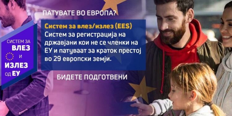 Министерството за внатрешни работи ги известува граѓаните дека од 10.04.2026 започнува со целосната имплементација на системот за влез во ЕУ (EES – Entry/Exit System), со што на надворешните граници на Европската унија се воведува нов, дигитализиран начин на евиденција и контрола на државјани кои патуваат за краткорочен престој а се од држави кои не се членки на ЕУ.