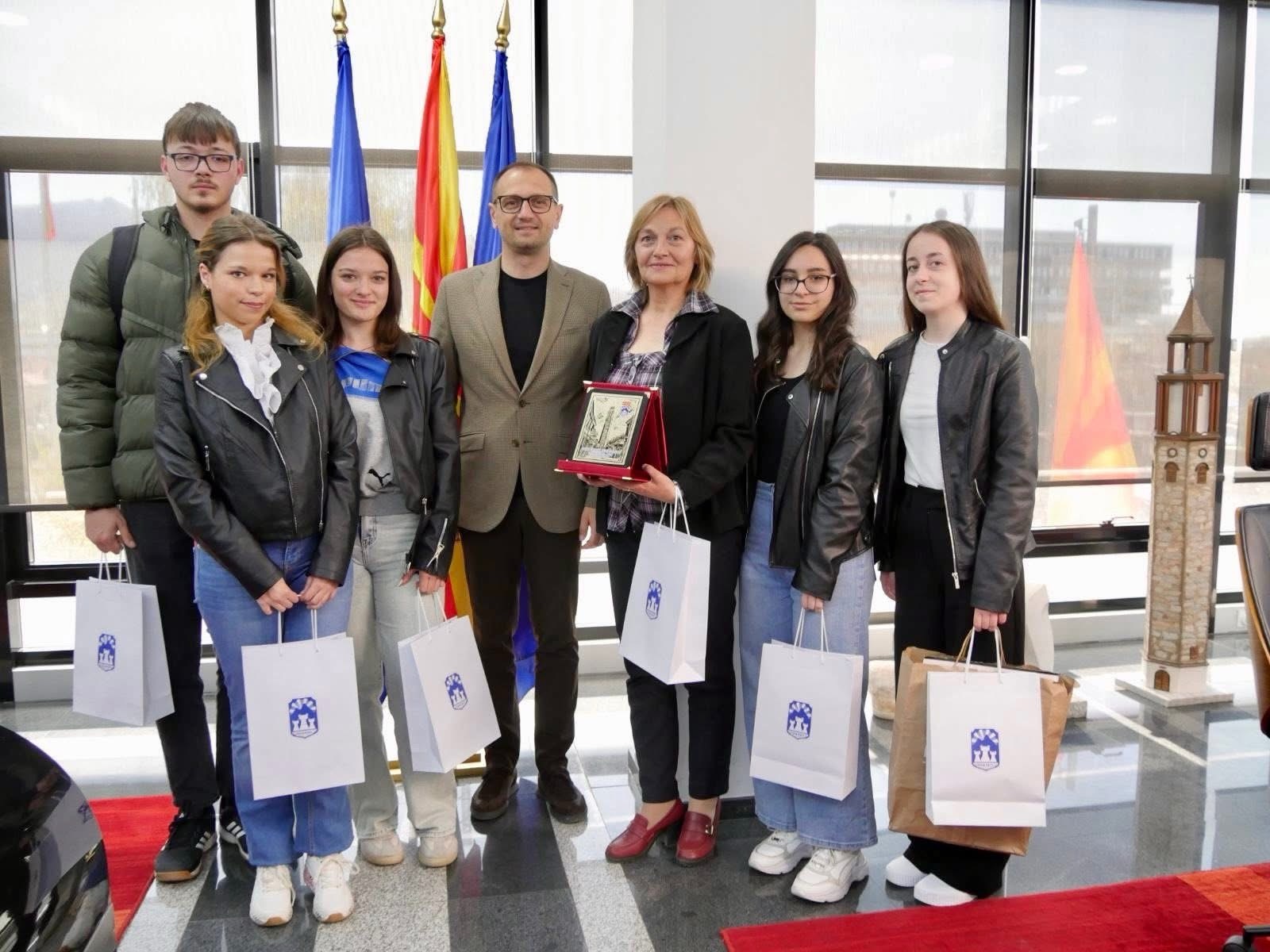 Градоначалникот на Општина Прилеп, Дејан Проданоски, денеска во својот кабинет ги пречека учениците Теодора, Анастасија, Александра, Давид и Мартина од СОУ „Ристе Ристески – Ричко“, кои го освоија првото место на натпреварот по циркуларна економија, одржан на Економскиот факултет во Прилеп.