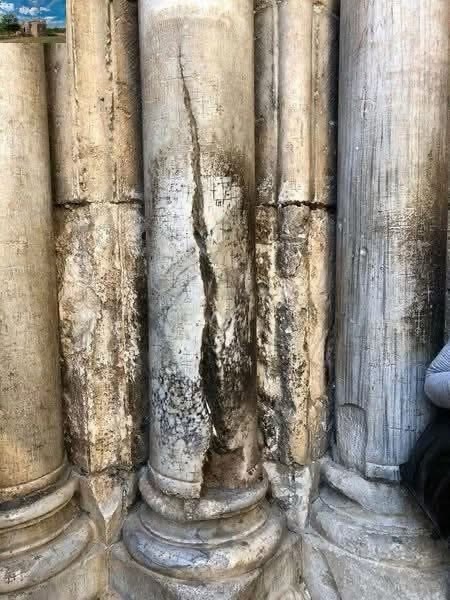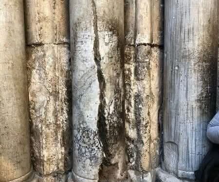 Во дворот на Црквата на Светиот Гроб, позната и како Храмот на Воскресението Христово во Ерусалим, и денес стои мермерен столб кој, според православното предание, бил расцепен при чудесното појавување на Благодатниот оган во 1579 година.