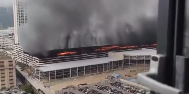Пожар избувна во фабричка зграда на седиштето на кинескиот производител на електрични возила BYD, лоцирано во областа Пингшан во Шенжен, Кина, на 14 април 2026 година.