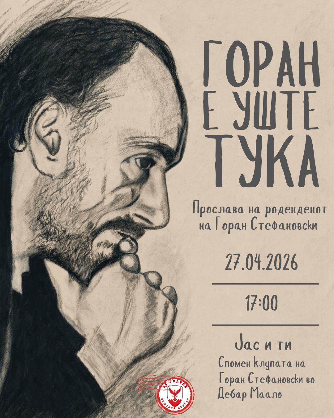 Во Дебар Маало, во срцето на општина Центар, денес од 17 часот ќе оживее уште едно сеќавање на големиот македонски драмски автор Горан Стефановски. Кај спомен-клупата посветена на неговото име ќе се одржи културен настан со кој ќе се одбележи неговиот роденден, но и трајното влијание што го остави врз македонската уметност и јавен живот.