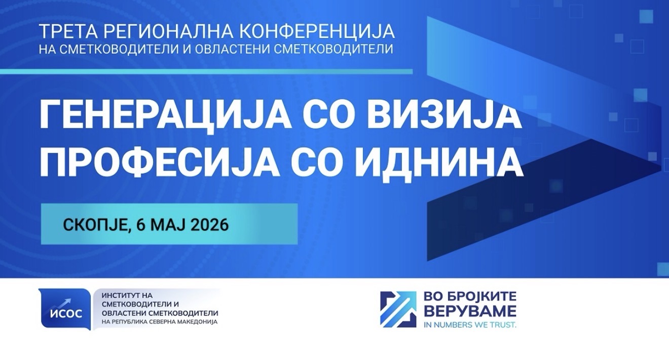Во организација на ИСОС – Институтот на сметководители и овластени сметководители, на 6 мај 2026 година во Скопје ќе се одржи третата регионална конференција на сметководители и овластени сметководители, под мотото: „Генерација со визија – Професија со иднина“.