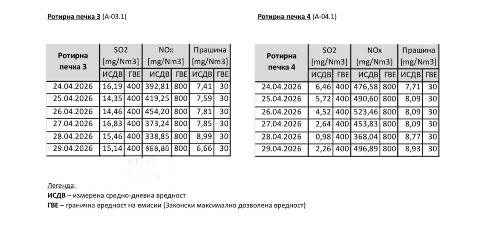 Емисиите од работата на ТИТАН УСЈЕ постојано се под граничните вредности определени со Закон