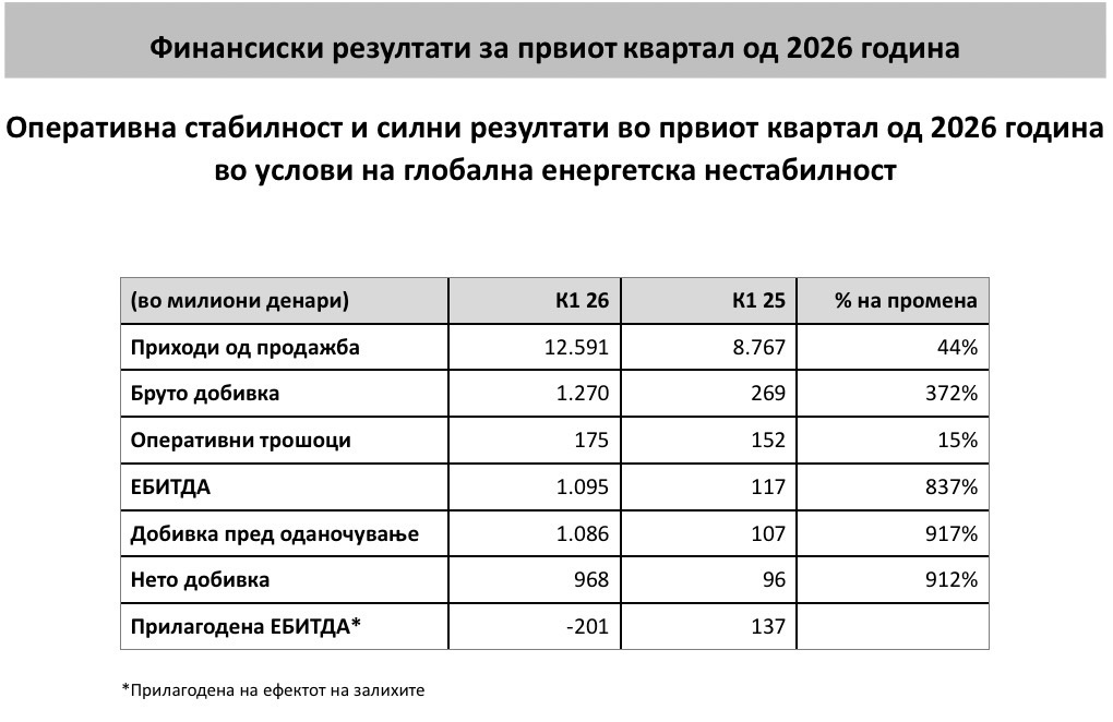 Повисокиот обем на продажба ѝ одеше во прилог на бруто профитабилноста во првиот квартал од 2026 година, додека ефектите од вреднувањето на залихите што произлегоа од галопирањето на меѓународните цени на горивата во текот на периодот исто така влијаеја на објавените резултати. Оперативните трошоци се зголемија за 15% на годишно ниво, главно одразувајќи привремени фактори водени од активноста, додека компанијата продолжи строго да ја контролира основната трошковна база.