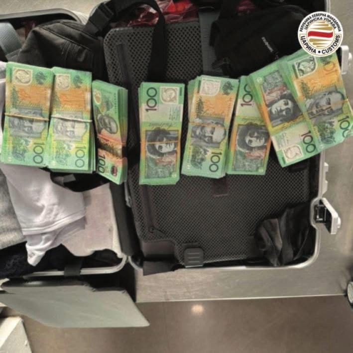 Царински службеници на Меѓународен аеродром Скопје откриле 68.000 австралиски долари кај брачен пар од Македонија, откако тие не ги пријавиле средствата при влез во државата.