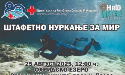 Во понеделник во Охридското Езеро, пред хотелот „Палас“ кај „Старото пристаниште“, ќе се одржи единствениот настан од ваков вид во светот – „Штафетно нуркање за мир“....